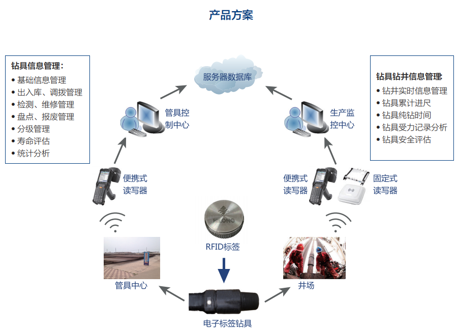 海隆電子標(biāo)簽鉆具及物聯(lián)網(wǎng)管理系統(tǒng)——通過每根鉆具產(chǎn)品上安裝無(wú)線射頻識(shí)別(RFID)標(biāo)簽,使其擁有獨(dú)一無(wú)二的“電子身份證”,結(jié)合智能讀寫設(shè)備和物聯(lián)網(wǎng)管理系統(tǒng),高效、精確地實(shí)現(xiàn)鉆具生產(chǎn)、出入庫(kù)、調(diào)撥、使用、維修、檢測(cè)、報(bào)廢等全生命周期的管理。