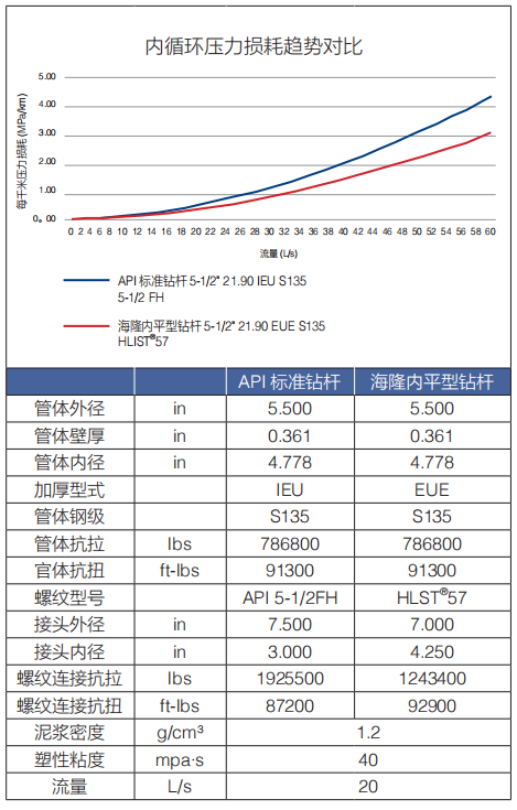 下面以 5 1/2" 21.9lb/ft S135 鉆桿為例給出內(nèi)平型鉆桿與普通 API 鉆桿的比較: