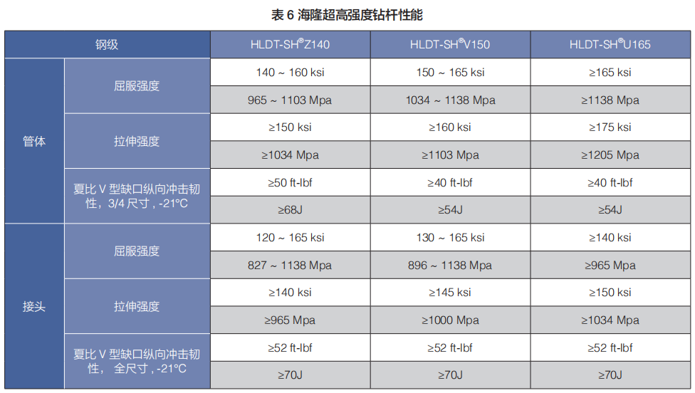 海隆超高強度鉆桿是一種適用于深井,超深井 , 大位移井等苛刻鉆井環(huán)境的專有產(chǎn)品,具有高強度、高韌性、高抗疲勞能力。通過采用特殊的材質(zhì)及嚴(yán)格的熱處理工藝控制,使其在強度提高的同時,還具備良好的沖擊韌性。